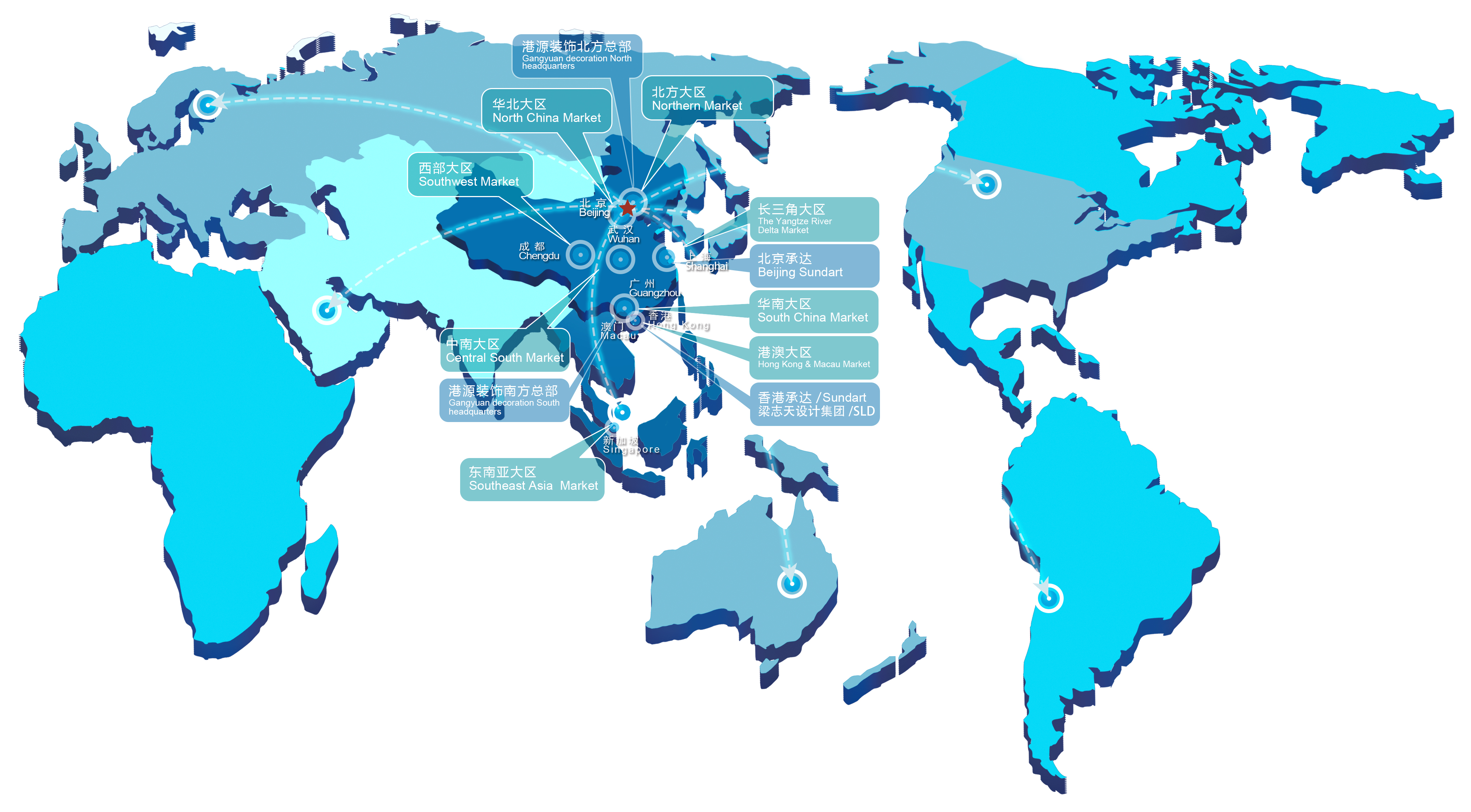 江河建筑装饰板块定位于整体解决方案提供商,以幕墙、室内装饰(含设计)等业务领域为主要方向,致力于提供绿色建筑系统服务。坚持领先战略,加快技术创新,推动业务标准化、系统化、集成化,加强集约经营和业务协同,实现建筑装饰板块业务稳健和可持续发展。十多年来,业务遍布全球二十多个国家和地区,在全球各地承建了近千项难度大、规模大、影响大的地标建筑,荣获了包括中国建设工程鲁班奖在内的国内外顶级荣誉百余项。
